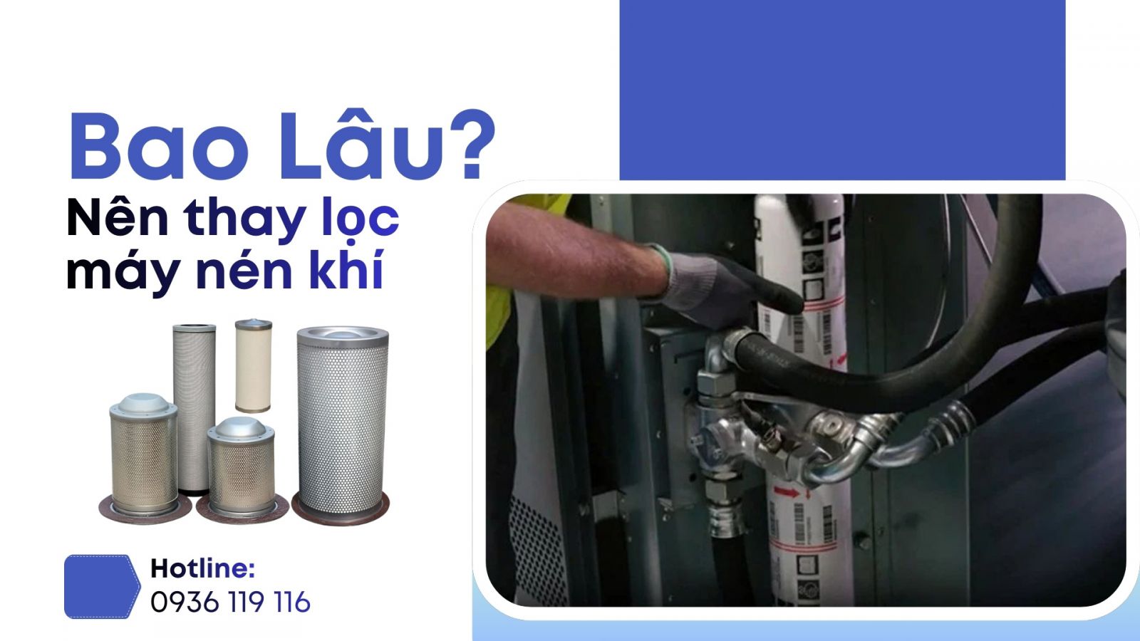 Thời gian thay lọc máy nén khí phụ thuộc vào loại lọc, môi trường vận hành và số giờ chạy máy. Dưới đây là mốc khuyến nghị phổ biến trong ngành: